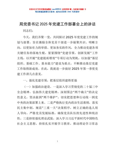 / 局党委书记2025年党建工作部署会上的讲话