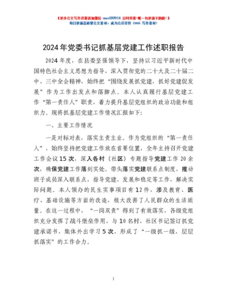 / 2024年党委书记抓基层党建工作述职报告