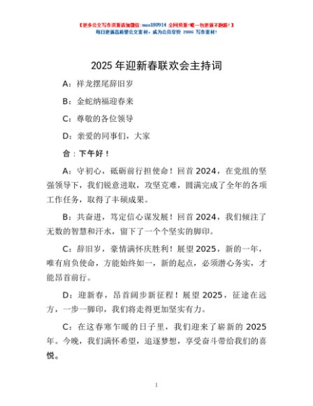 / 2025年迎新春联欢会主持词
