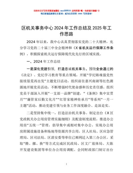 / 区机关事务中心2024年工作总结及2025年工作思路