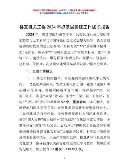 / 县直机关工委2024年抓基层党建工作述职报告