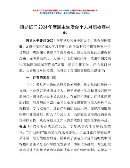 / 领导班子2024年度民主生活会个人对照检查材料
