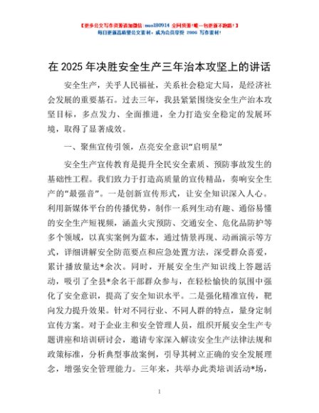 / 在2025年决胜安全生产三年治本攻坚上的讲话