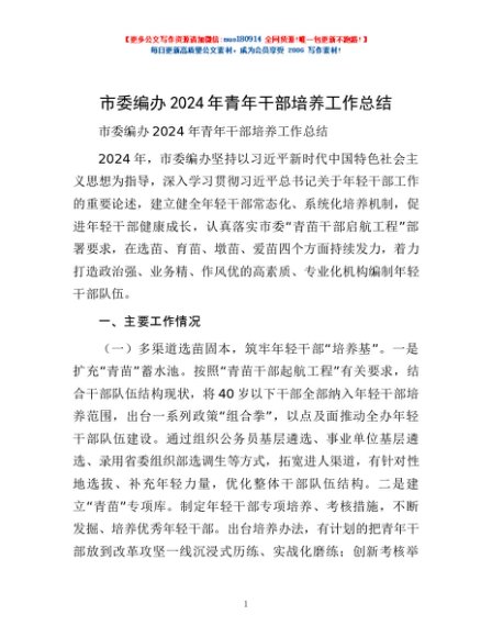 / 市委编办2024年青年干部培养工作总结