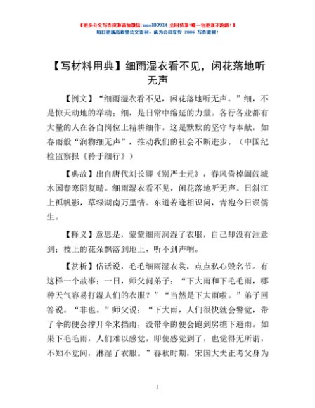 / 【写材料用典】细雨湿衣看不见,闲花落地听无声