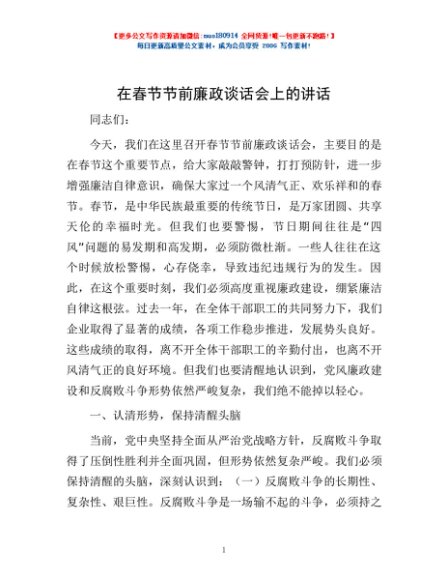 / 在春节节前廉政谈话会上的讲话