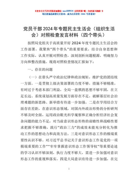 / 党员干部2024年专题民主生活会(组织生活会)对照检查发言材料(四个带头)