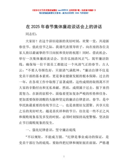 / 在2025年春节集体廉政谈话会上的讲话