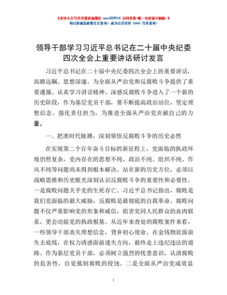 / 领导干部学习习近平总书记在二十届中央纪委四次全会上重要讲话研讨发言