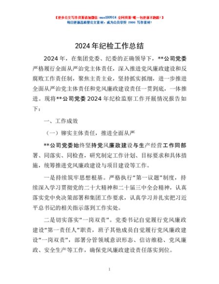 / 2024年纪检工作总结