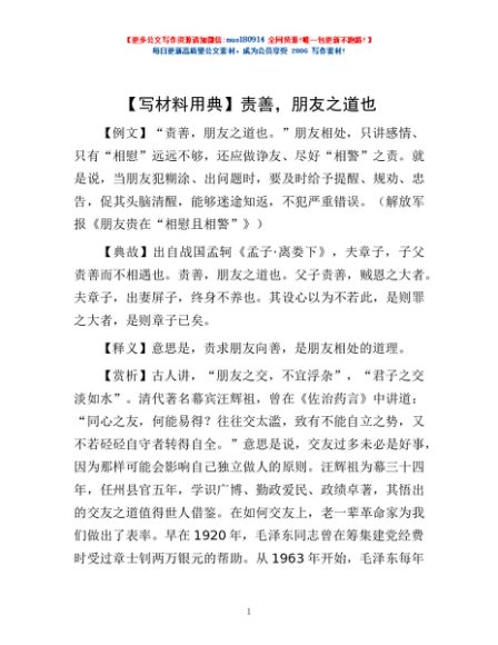 / 【写材料用典】责善,朋友之道也