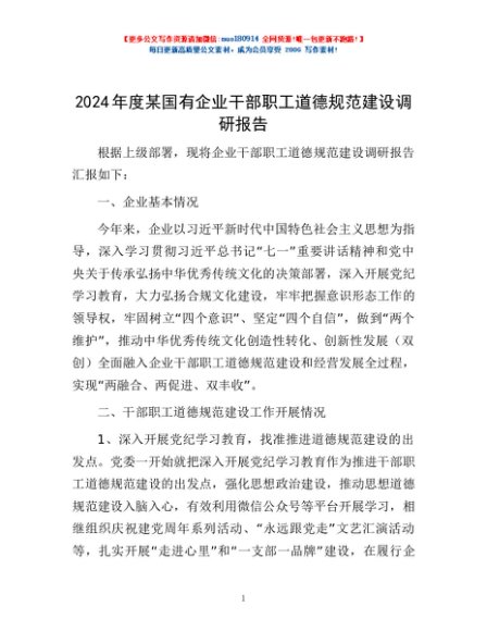 / 2024年度某国有企业干部职工道德规范建设调研报告