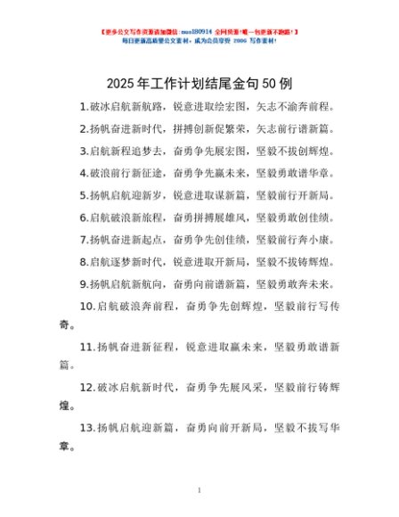 / 2025年工作计划结尾金句50例