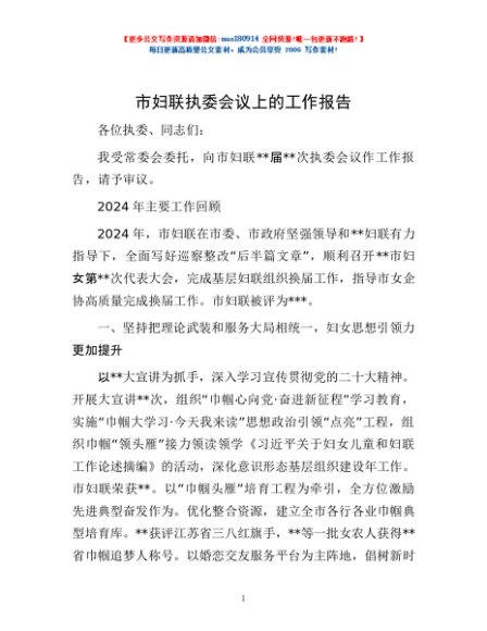 / 市妇联执委会议上的工作报告