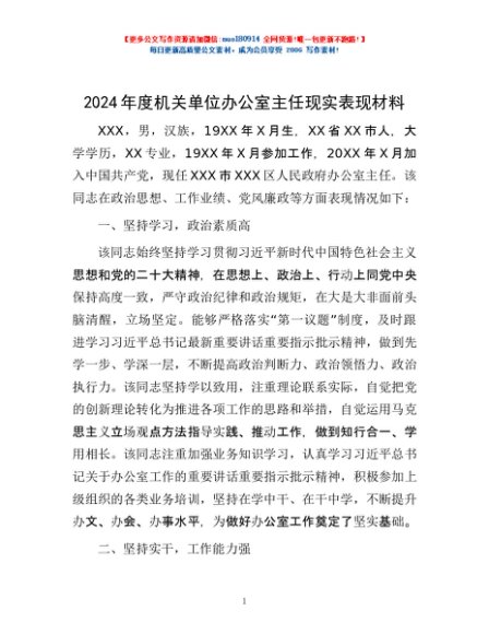/ 2024年度机关单位办公室主任现实表现材料
