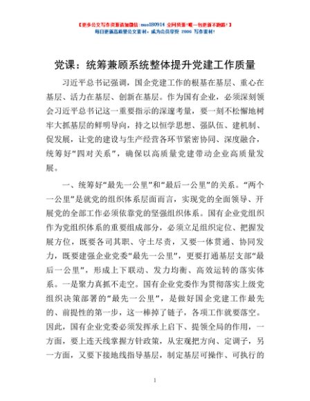 党课:统筹兼顾 系统整体提升党建工作质量