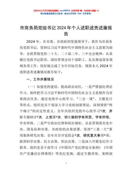/ 市商务局党组书记2024年个人述职述责述廉报告