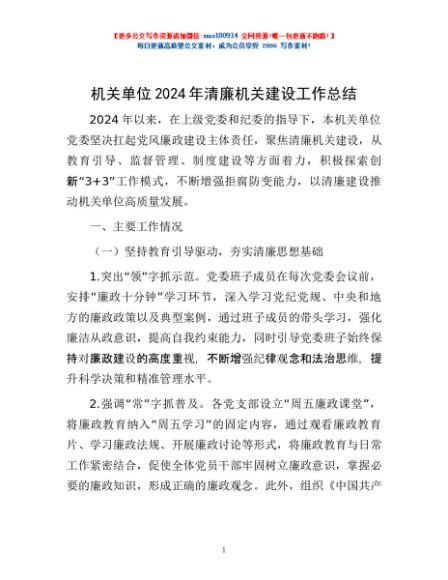 / 机关单位2024年清廉机关建设工作总结
