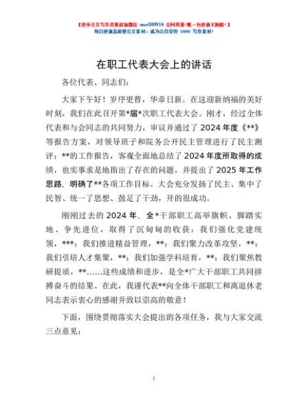 / 在职工代表大会上的讲话
