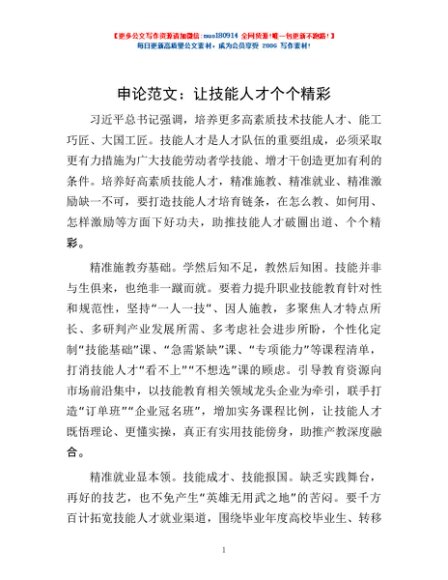 / 申论范文:让技能人才个个精彩