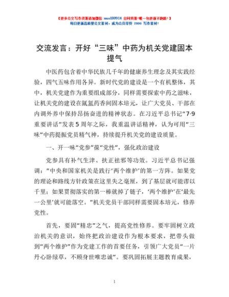 / 交流发言:开好“三味”中药为机关党建固本提气