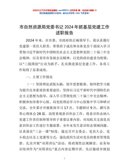 / 市自然资源局党委书记2024年抓基层党建工作述职报告