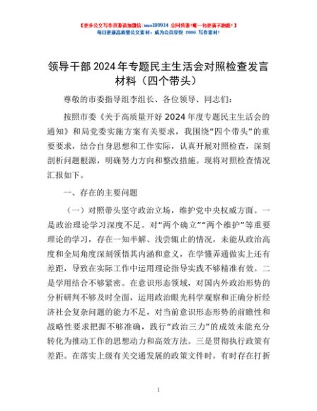 / 领导干部2024年专题民主生活会对照检查发言材料(四个带头)