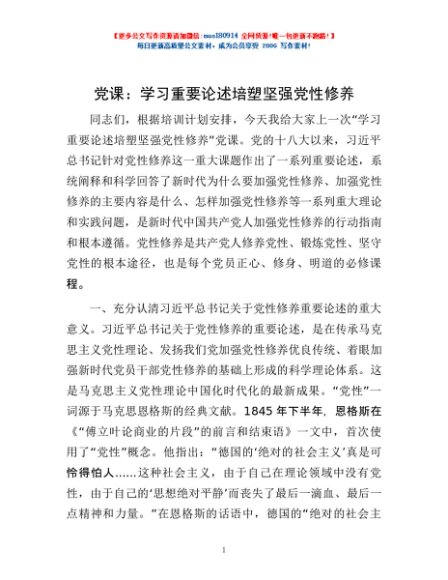 / 党课:学习重要论述 培塑坚强党性修养
