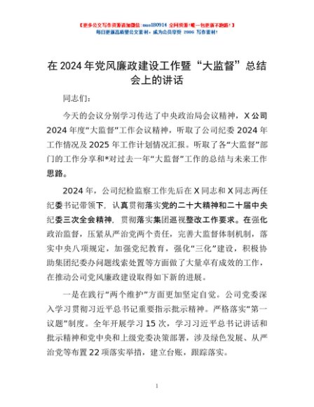 / 在2024年党风廉政建设工作暨“大监督”总结会上的讲话