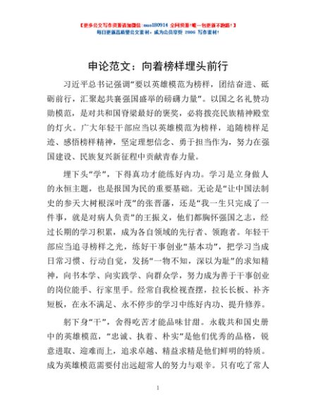 / 申论范文:向着榜样埋头前行