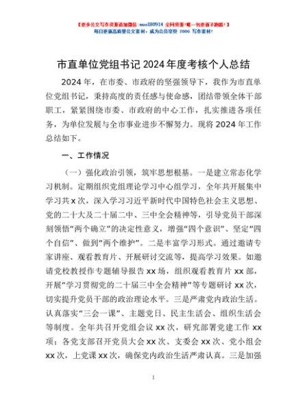 / 市直单位党组书记2024年度考核个人总结