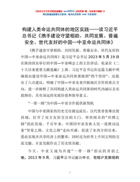 / 构建人类命运共同体的地区实践——读习近平总书记《携手建设守望相助、共同发展、普遍安全、世代友好的中国—中亚命运共同体》