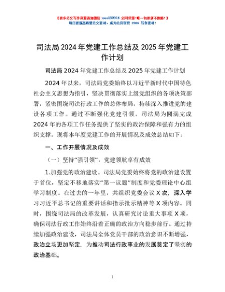 / 司法局2024年党建工作总结及2025年党建工作计划