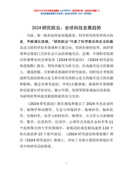 2024研究前沿:全球科技发展趋势