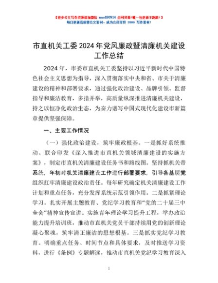 / 市直机关工委2024年党风廉政暨清廉机关建设工作总结