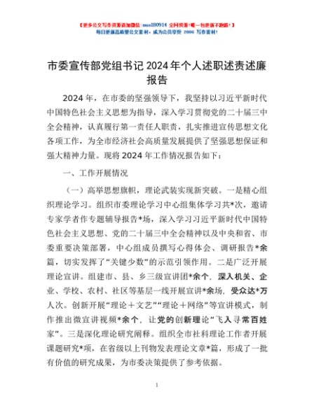 / 市委宣传部党组书记2024年个人述职述责述廉报告