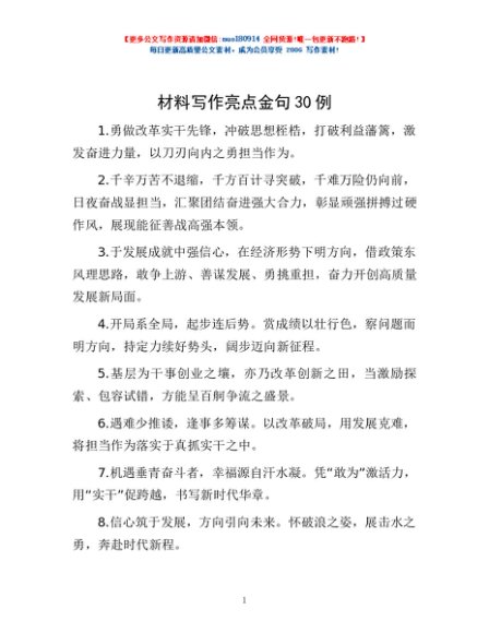 / 材料写作亮点金句30例