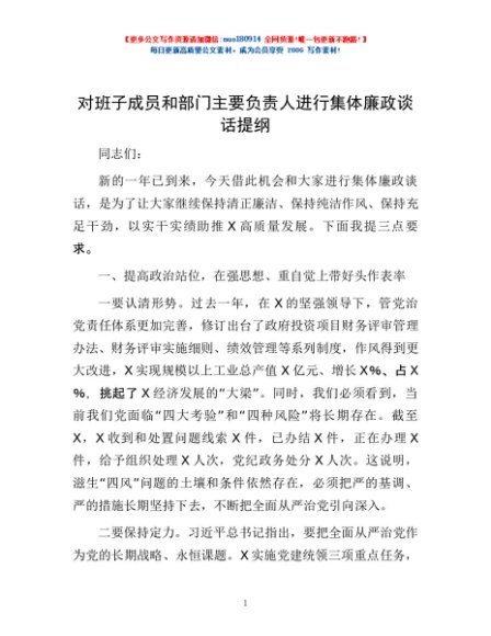 / 对班子成员和部门主要负责人进行集体廉政谈话提纲