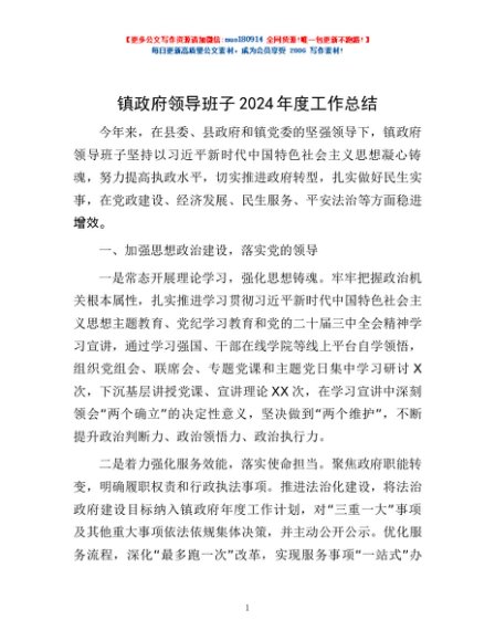 / 镇政府领导班子2024年度工作总结