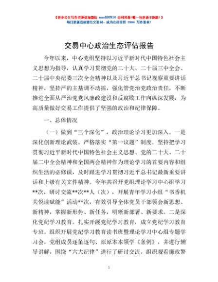 交易中心政治生态评估报告