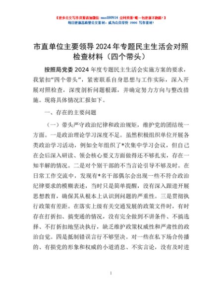 / 市直单位主要领导2024年专题民主生活会对照检查材料(四个带头)