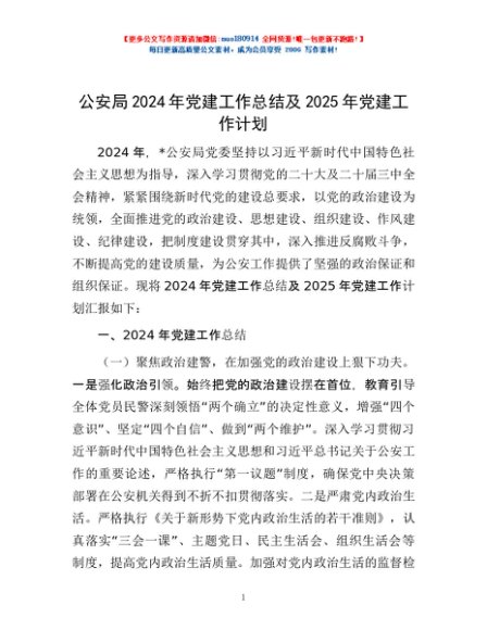 / 公安局2024年党建工作总结及2025年党建工作计划