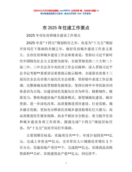 / 市2025年住建工作要点