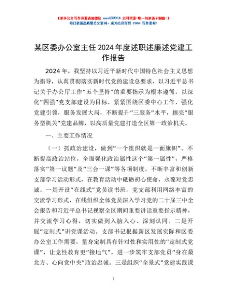 / 某区委办公室主任2024年度述职述廉述党建工作报告