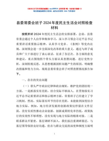 / 县委常委会班子2024年度民主生活会对照检查材料
