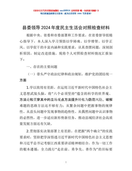 / 县委领导2024年度民主生活会对照检查材料