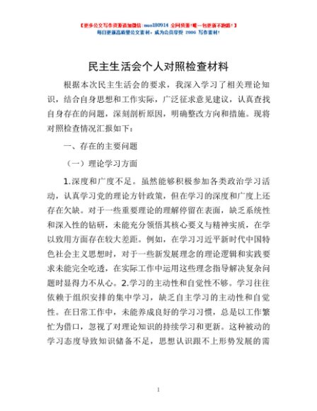 / 民主生活会个人对照检查材料