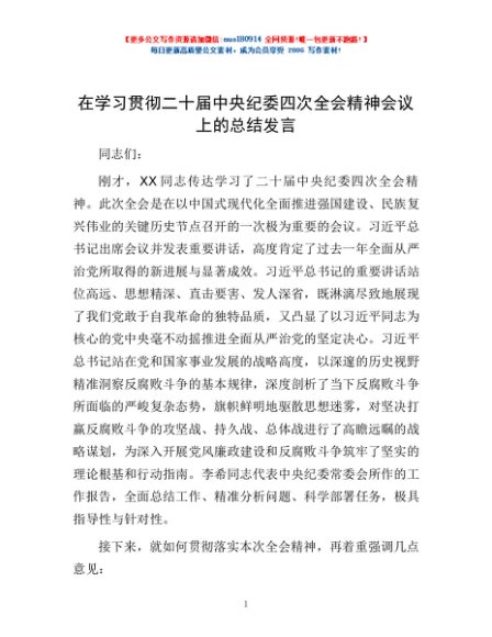 / 在学习贯彻二十届中央纪委四次全会精神会议上的总结发言