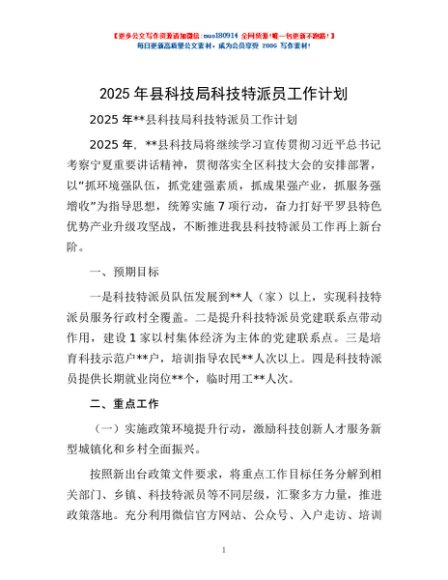 / 2025年县科技局科技特派员工作计划
