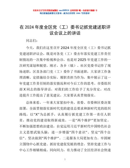 / 在2024年度全区党(工)委书记抓党建述职评议会议上的讲话